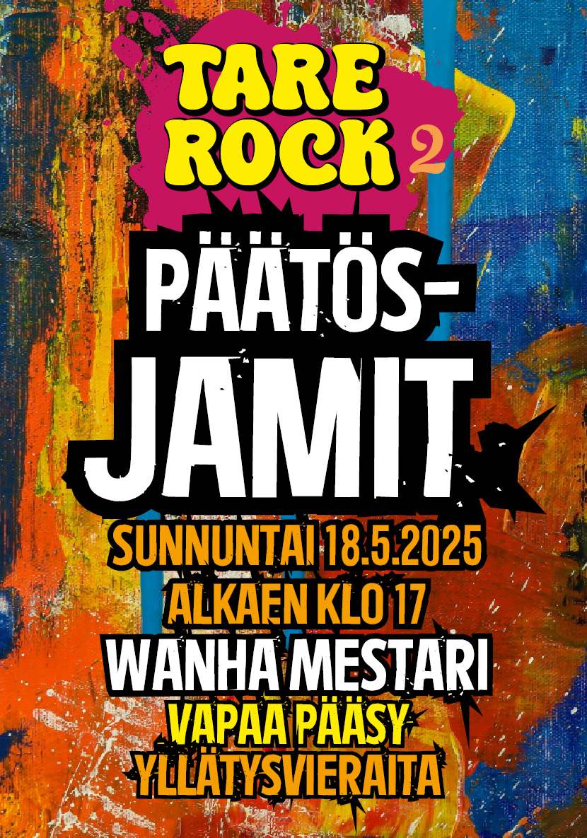Tare Rock 2 päätösjamit sunnuntaina 18.5.2025 klo 17 alkaen Wanha Mestari ( Koskikatu 11, Rovaniemi) vapaa pääsy.
